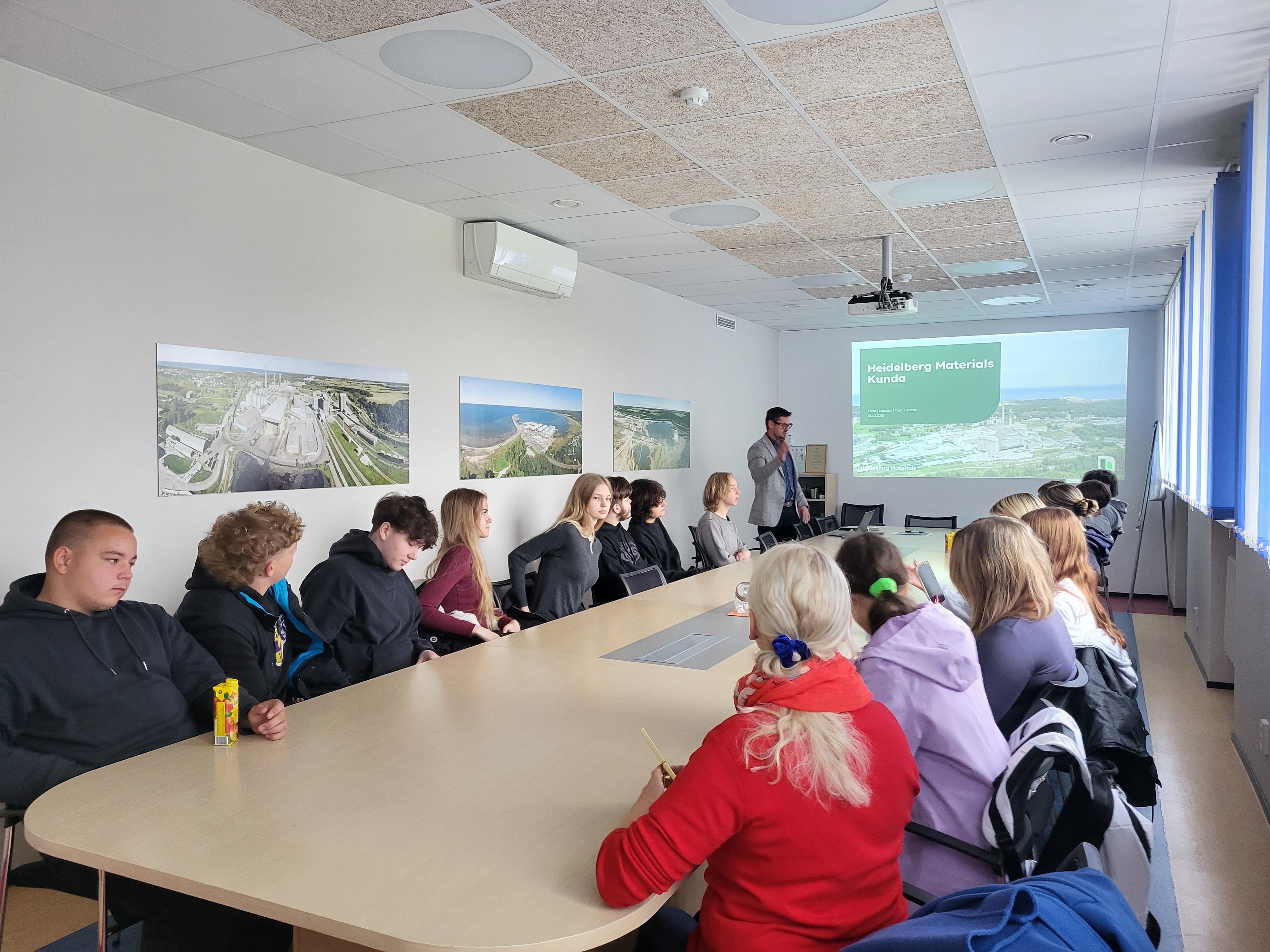 Külastus algas tehase kontoris, kus tegevjuht Riho Iskül tutvustas ettevõtte tegevust, toodete kasutust ehituses ning rääkis kestliku ehituse lahendustest, sealhulgas evoZero® tsemendist, mille abil saab toota CO₂-jalajäljeta betooni.